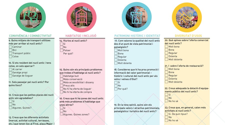 Més de 350 qüestionaris recollits ens permeten avançar els resultats sobre les opinions de la ciutadania respecte a les problemàtiques, atractius i millores del Nucli Antic d’Olot.