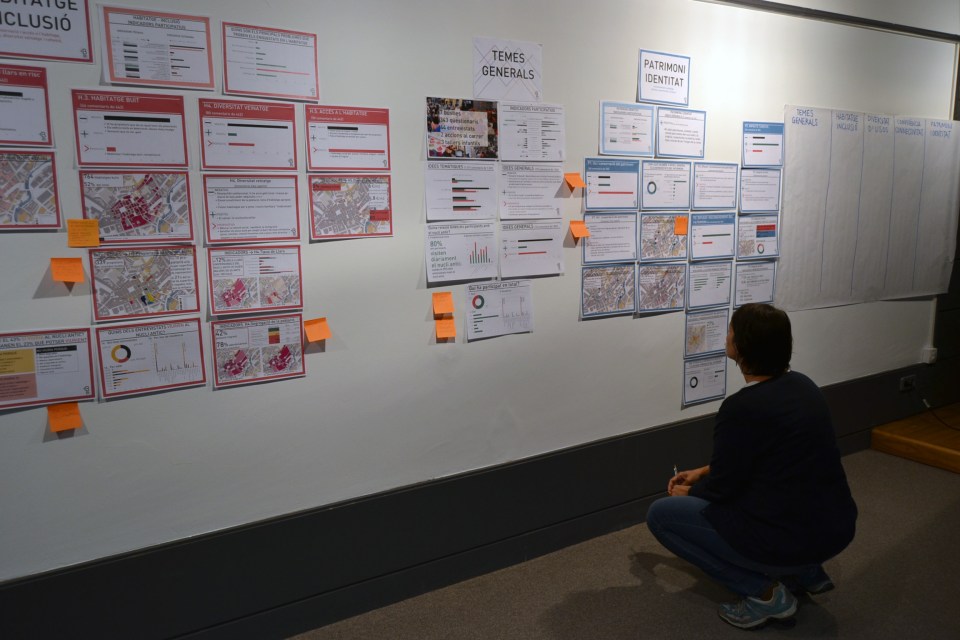 La implicació del personal tècnic municipal i les persones participants com a ciutadania, és important per #OlotMésB, per això les sessions de research wall ajuden al fet que facin pròpies les dades recollides.